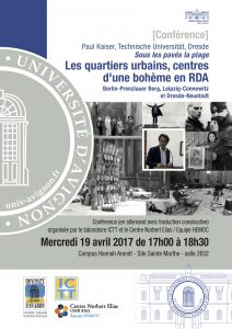 Sous les pavés la plage Les quartiers urbains comme centres d'une bohème en RDA – Berlin-Prenzlauer Berg, Leipzig-Connewitz et Dresde-Neustadt En RDA, les codes postaux de certains quartiers sont devenus les symboles majeurs d'une contre-culture – ainsi 1058 correspondait à Berlin-Prenzlauer Berg, 7050 à Leipzig-Connewitz et 8060à Dresde-Neustadt. À partir du début des années 1970 se sont ouverts dans ces quartiers délabrés datant de l'ère wilhelminienne des espaces de désinvestissement et d'action tout à la fois. Ces lieux ont précédé l'appropriation du Prenzlauer Berg à la fin de la décennie 1970 et ont permis à des styles de vie déviant de la norme et à des formes artistiques non conformes d'essaimer. Cette appropriation silencieuse mais durable de l'urbanisme dégradé constitue un pendant est-allemand au mouvement spectaculaire des squatts qui a débuté dans les années 1980 dans le quartier berlinois de Kreuzberg et à Hambourg et est resté jusqu'à aujourd'hui le ferment de la construction du mythe d'une culture alternative en RFA.